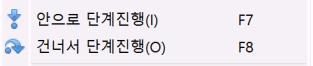 - 현재 줄에서 호출한 함수의 “첫 줄”로 들어감