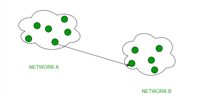 - 라우터, 브리지 등으로 연결됨
