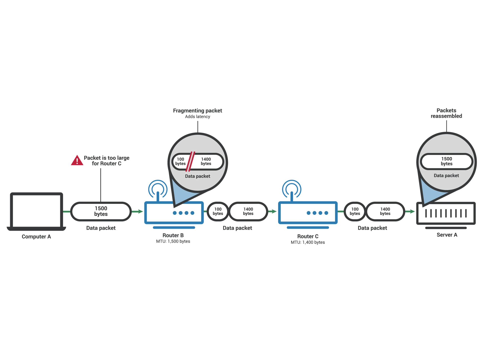 - 예) 본사와 지사 간 연결 선이 100Mbps로 제한되어 있는데, 동시에 여러 지사에서 대용량 파일을 전송하면 포화상태 발생