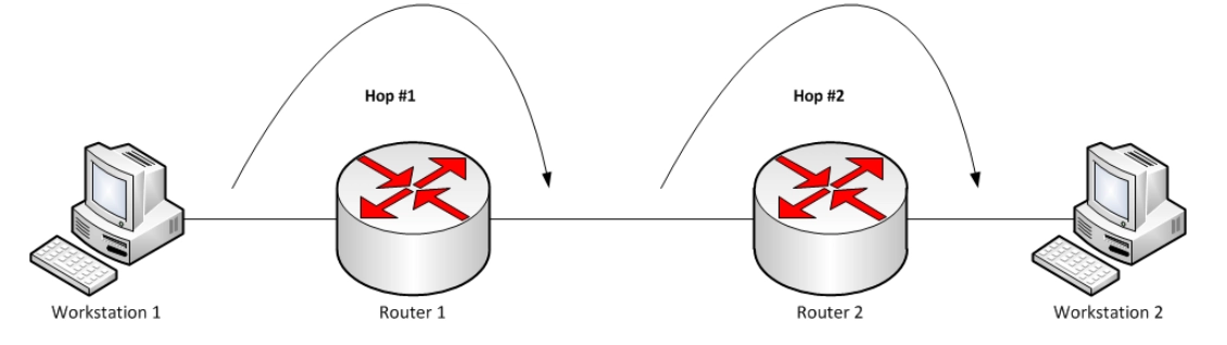 홉(hop)은 네트워크에서 출발지와 목적지 사이에 위치한 장치를 의미함