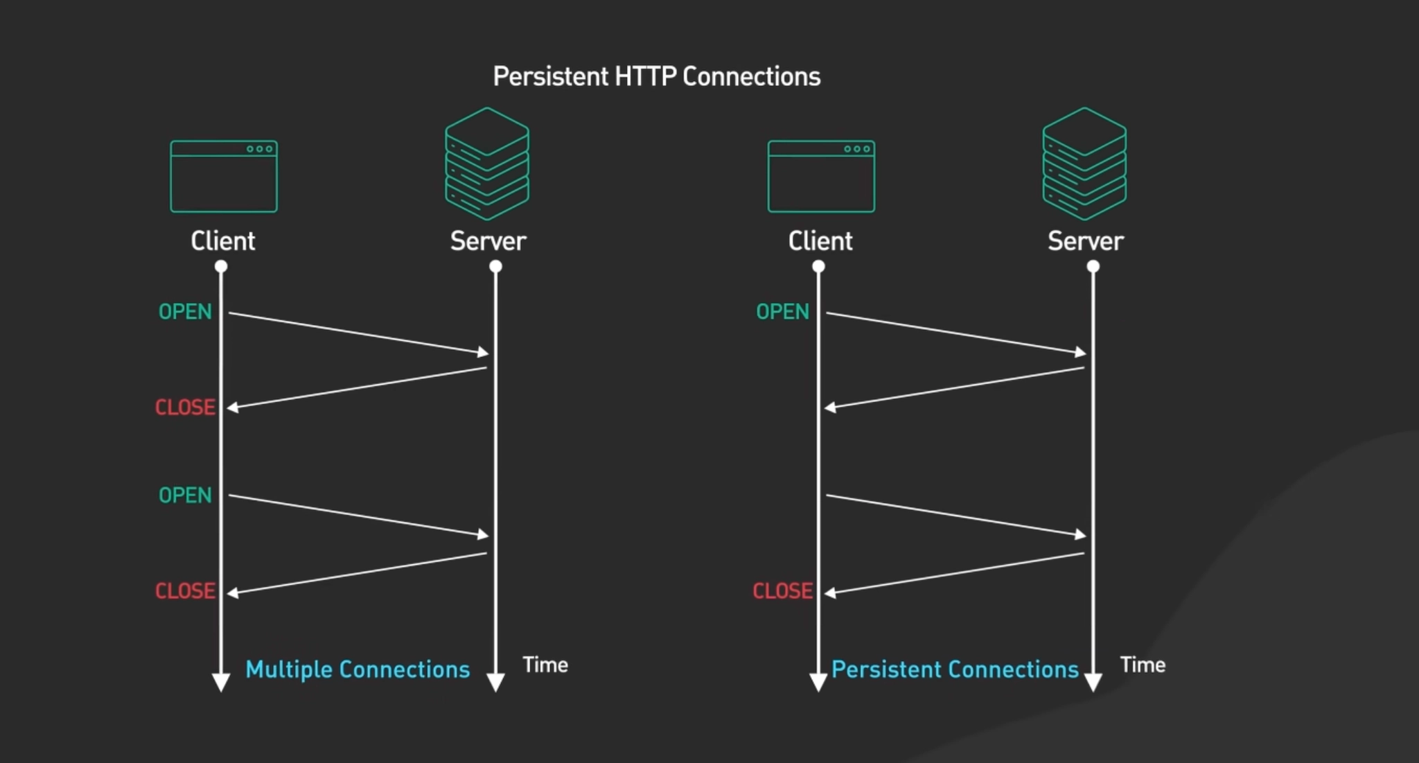 데이터를 요청할 때마다 TCP 연결을 하는게 아닌 한번 연결 하면, 계속 데이터를 주고 받을 수 있도록 함.