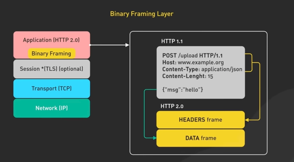 - 텍스트 대신 이진 형식(Binary)으로 프레임 단위로 데이터를 쪼개어 전달하여 처리 속도가 빨라짐