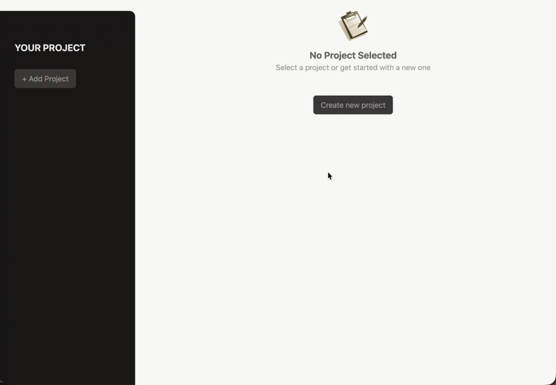 생성된 프로젝트 데이터는 사이드바와 상세 화면 모두에서 필요하므로, 가장 공통 분모인 App 컴포넌트에서 상태를 관리한다.
